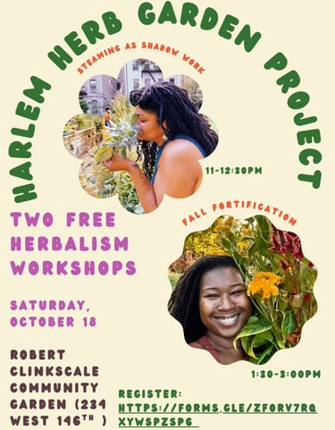 A wonderful community collab with Rabbit Hole Farm. Participants gather to learn about unblocking the root chakra with herbs while creating steam blends, bonding with the garden through touch and naming their healing process. Supplies included. Refreshments served.