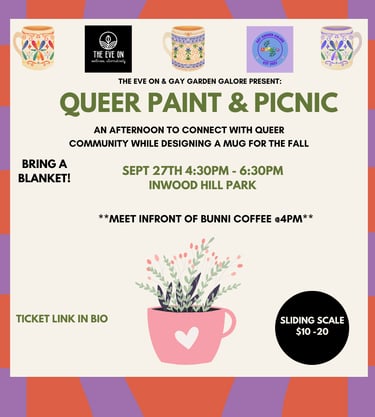 Calling all crafty queers! Come enjoy some freshly harvested tea by Gay Garden Galore. We're sharing pressed flowers, paint supplies and the bedazzles for all the gworls! Tickets are at sliding scale and come with all supplies for you to take home your own mug and tea bag! Don't forget ya blanket!